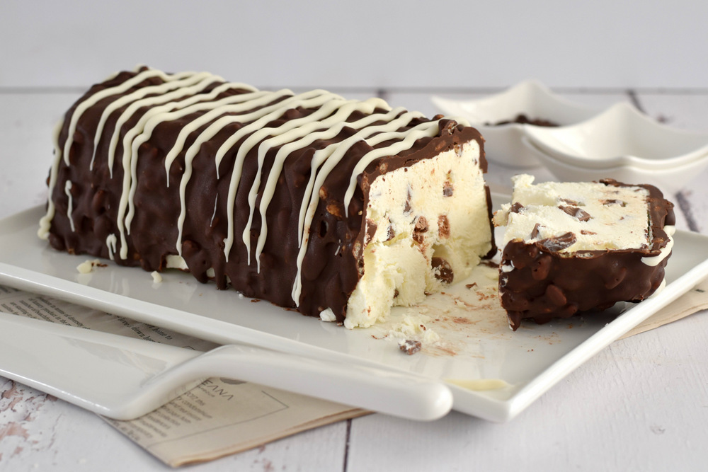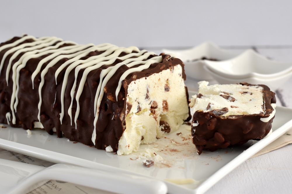 עוגת גלידה חלומית המשלבת גלידת וניל רכה עם פצפוצי שוקולד חלב, ציפוי קראנצ'י של שוקולד מריר, ואם כל זה לא מספיק אז לאקסטרה שחיתות נוסיף מעל הכל גם טפטופים של שוקולד לבן.